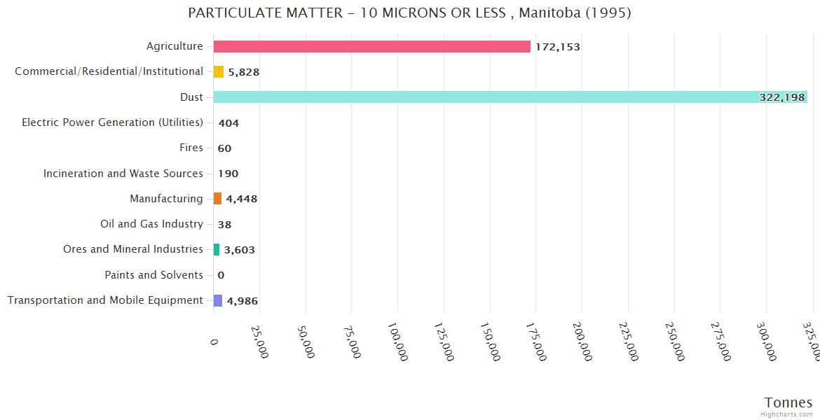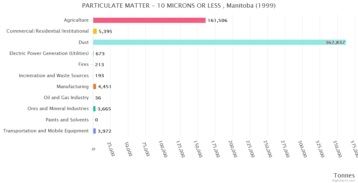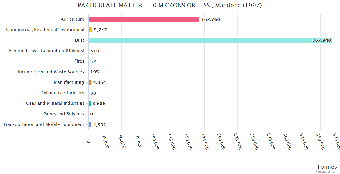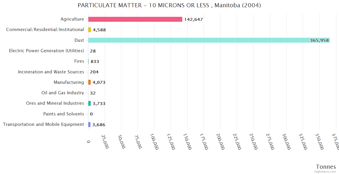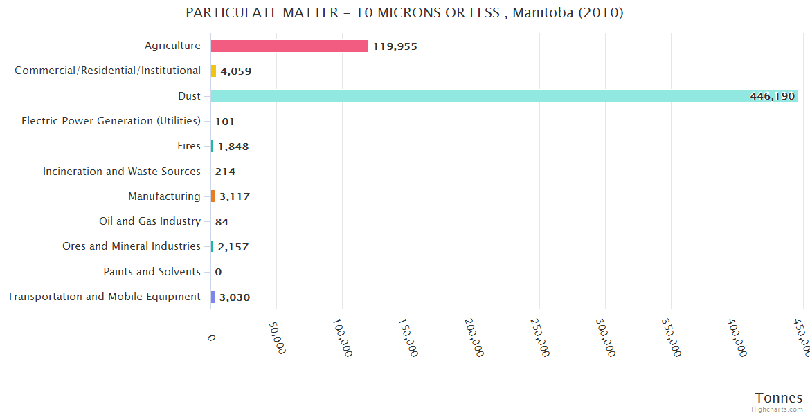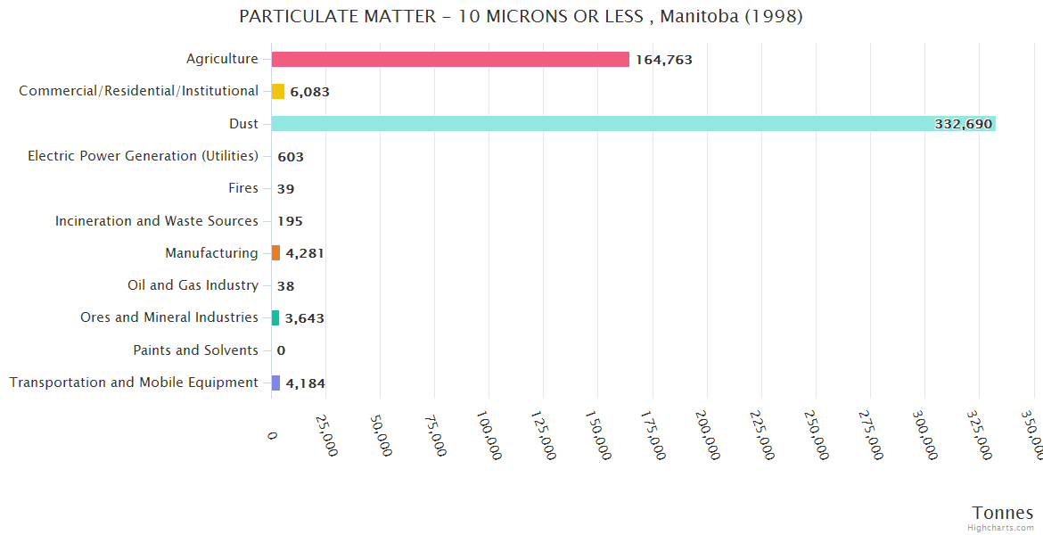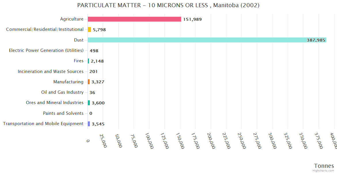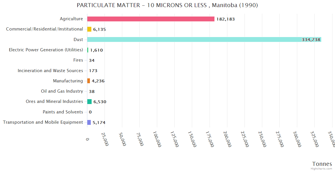 Manitoba PARTICULATE MATTER - 10 MICRONS OR LESS Emissions