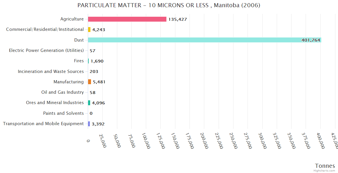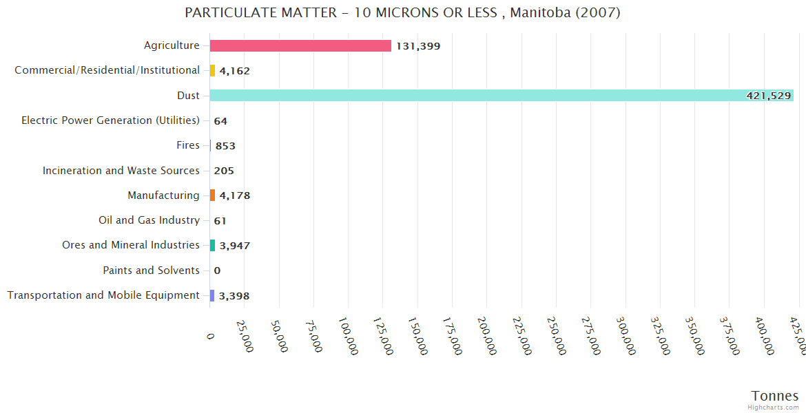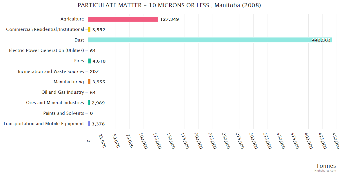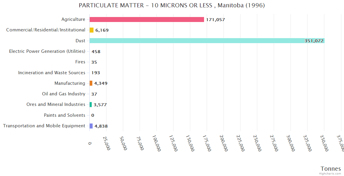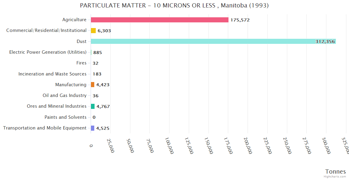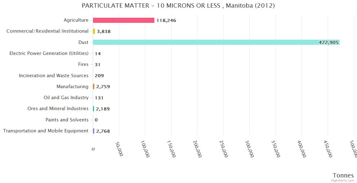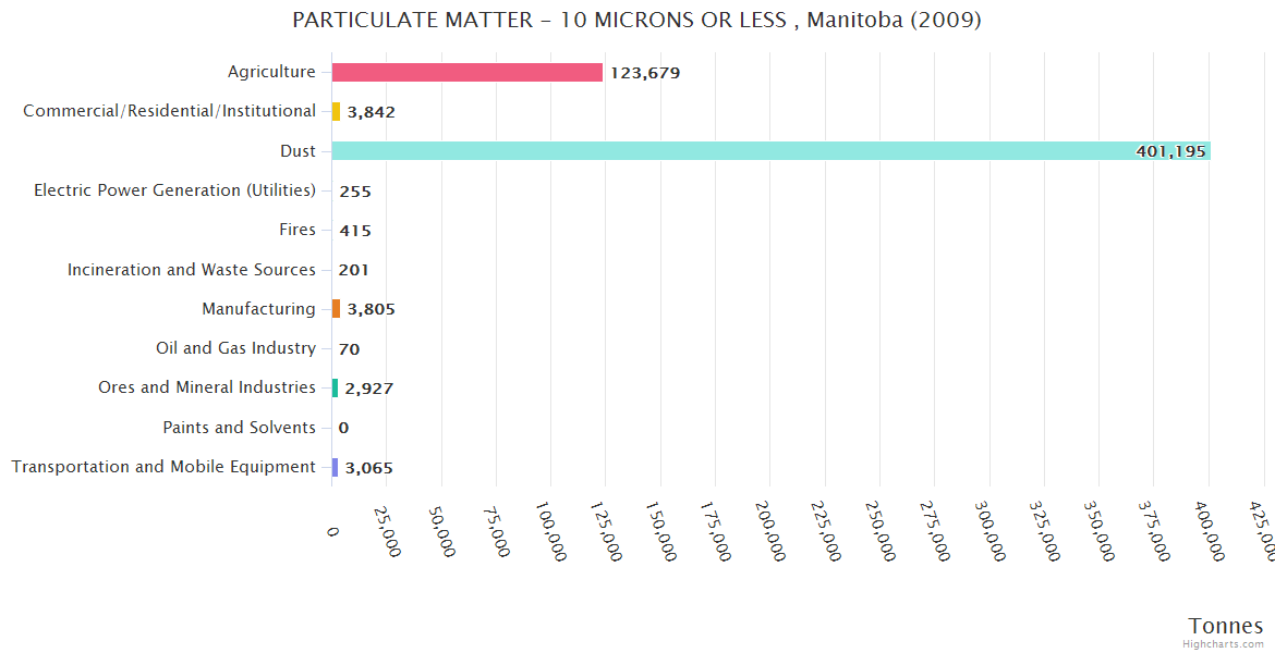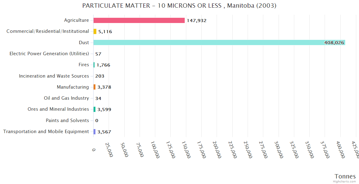 Manitoba PARTICULATE MATTER - 10 MICRONS OR LESS Emissions