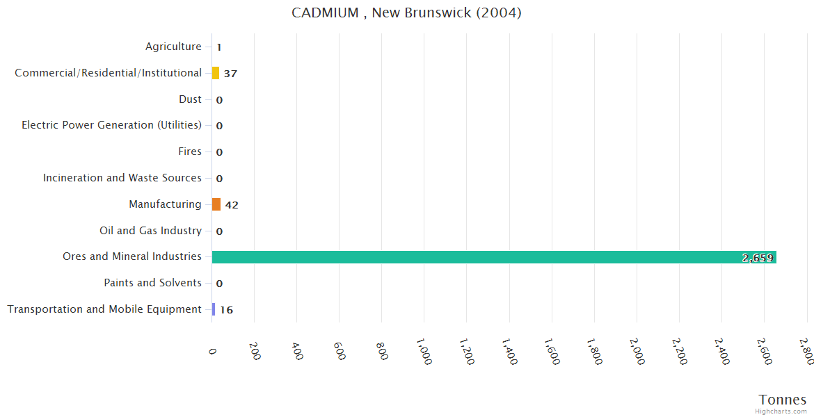 New Brunswick CADMIUM Emissions