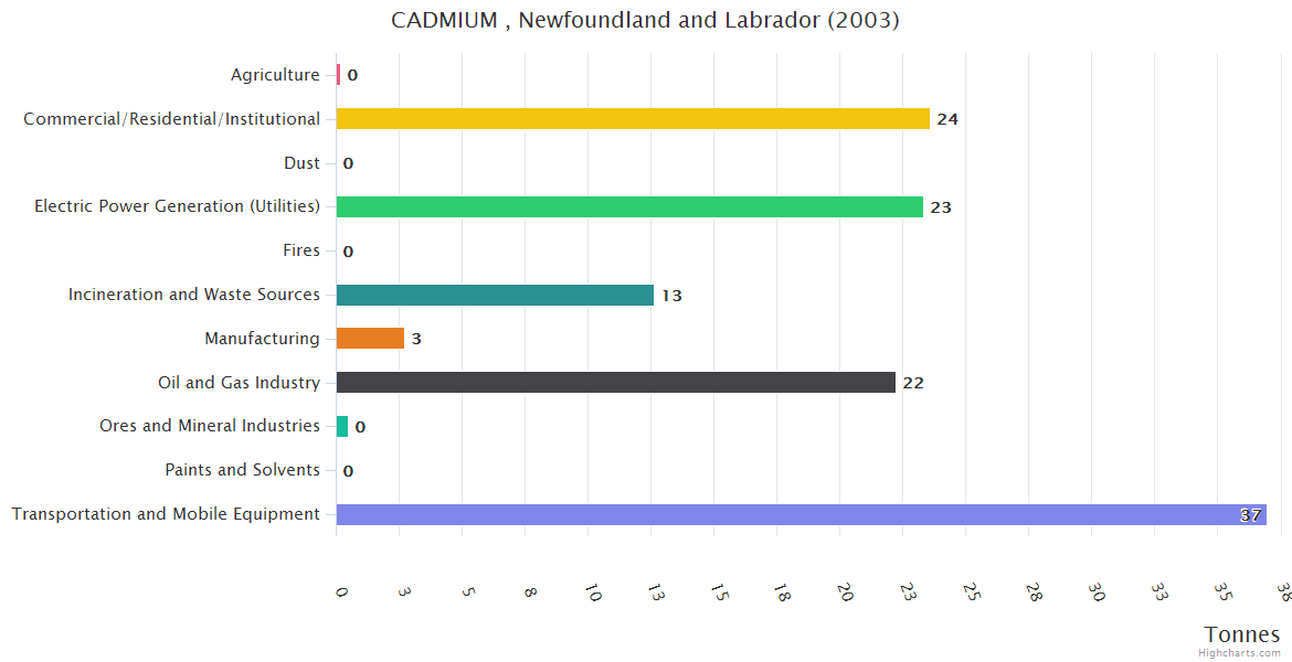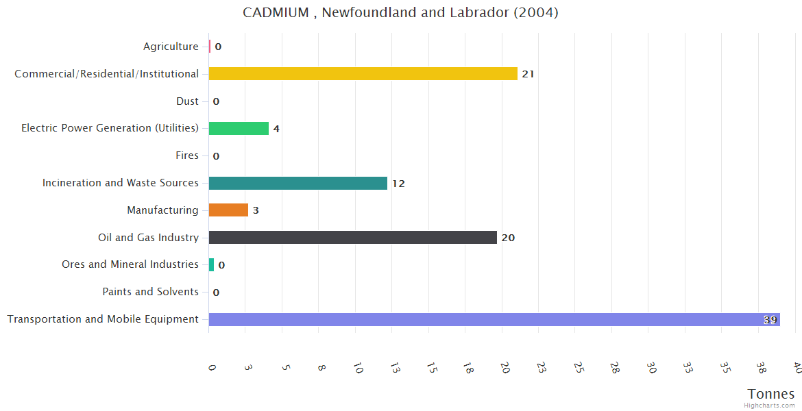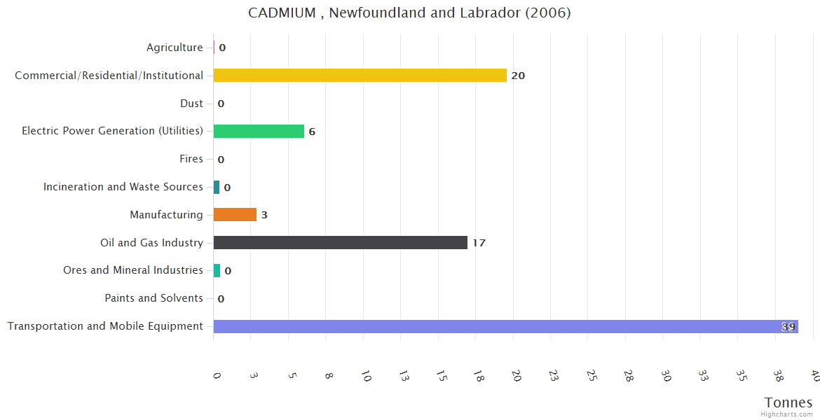 Newfoundland and Labrador CADMIUM Emissions
