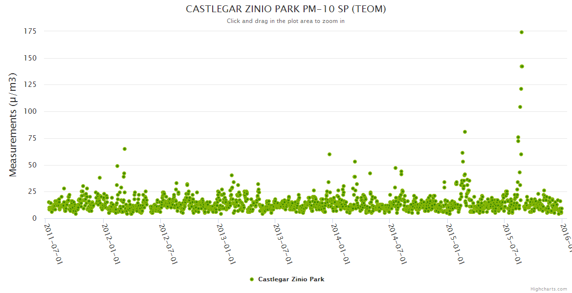 Castlegar Zinio Park Air Concentrations